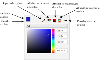 | Pour spécifier une couleur à l’aide des différents outils de couleurs |