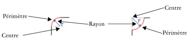 De gauche à droite : rayon d’un angle arrondi et rayon d’angle avec bavure.