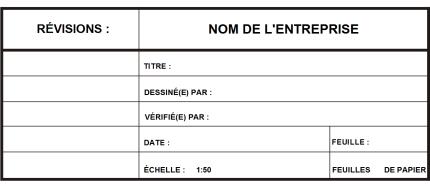 Dans cet exemple, un tableau a été utilisé pour créer le bloc de titre d’un dessin.