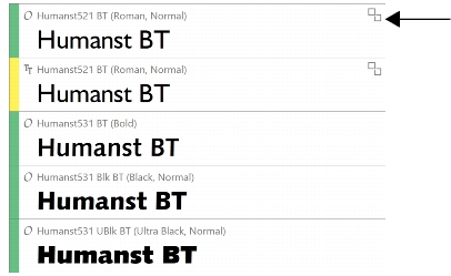 Foldery lub kolekcje mogą zawierać powielone wersje tej samej czcionki. Można na przykład mieć dwie takie same czcionki różniące się jedynie wersją. Duplikaty czcionek są oznaczane etykietą.