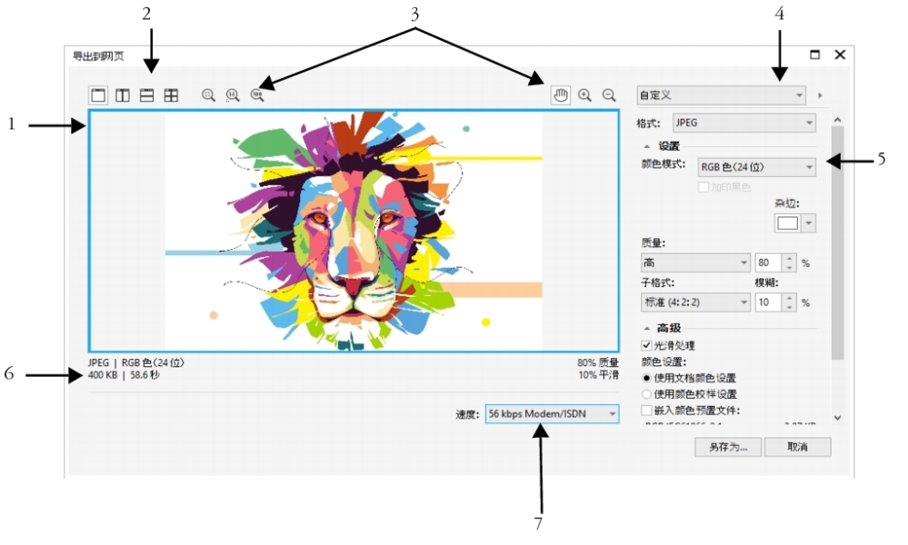 | 自定义导出 JPEG 位图的选项 |