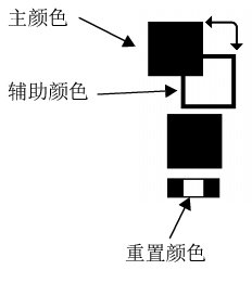 主颜色色样显示应用于所有绘画、形状、填充和文本工具的当前颜色。 辅助颜色色样显示擦除背景部分或增加纸张尺寸时显示的当前辅助颜色。 通过重置颜色图标可恢复为默认颜色 - 主颜色为黑色,辅助颜色为白色。 |