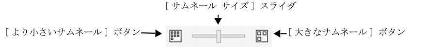 | [より小さいサムネール] ボタンまたは [大きなサムネール] ボタンをクリックして、サムネールのサイズを少しずつ調整することもできます。 |
