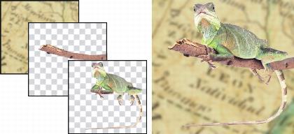 Objetos são como camadas transparentes que se empilham umas sobre as outras. Esta imagem consiste em um fundo e dois objetos de foto.
