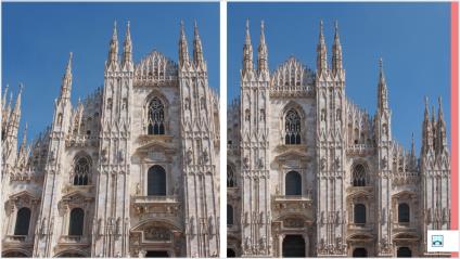 運用 CorelDRAW 和 Corel PHOTO-PAINT 中增強的「對齊影像」對話方塊,您現在可以針對具有直線及平面的相片,例如建築相片與建築物相片,校正透視變形。