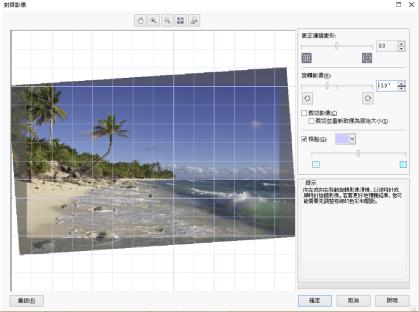 | 如有影像有鏡頭變形情況,請將「修正鏡頭變形」滑棒移到左邊即可修正桶狀變形,或是將滑棒移到右邊即可修正枕狀變形。 |
