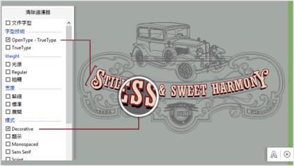 | 2 . | 按兩下「字型清單」方塊,並鍵入字型名稱或字型技術等關鍵字。 |