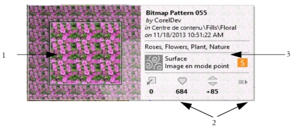 Le contenu Exchange renferme le contenu fourni par Corel ou que d’autres utilisateurs ont partagé. Pour utiliser le contenu Exchange, vous devez être connecté à votre compte corel.com. Pour plus d’informations, reportez-vous aux sections Vérification des paramètres du compte et des détails sur le produit et Utilisation du Centre de contenu.