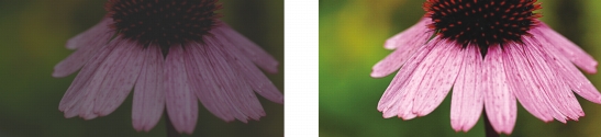 Saturation slider — lets you adjust the vividness of colors. For example, by moving