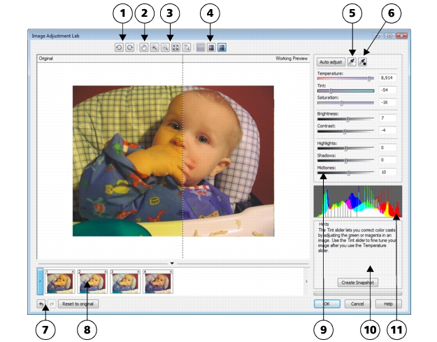 While you work in the Image Adjustment Lab, you can take advantage of the following features: