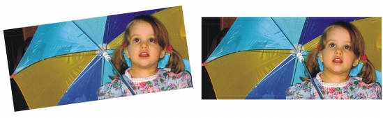 Исходное изображение (слева); выпрямленное и обрезанное изображение (справа)