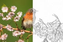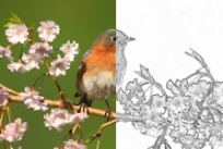El efecto Buscar todos mejora el contraste entre la luz y la oscuridad de la imagen, oscureciendo la imagen y resaltando los bordes. Para aplicar el efecto Buscar contornos, haga clic en Efectos
