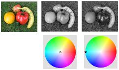 | Met hogere waarden worden groentinten lichter en blauwtinten donkerder. Als u de waarde instelt op 0, ontstaat er een grijswaardenafbeelding. |