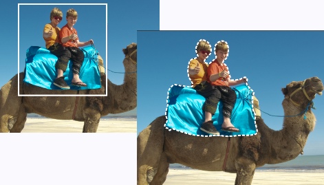 Gereedschap Automatische selectie — maakt een slimme selectie door een gebied op de afbeelding in te sluiten binnen een rechthoek die automatisch wordt uitgelijnd op de randen die herkend worden. |