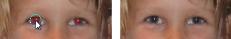 Met het gereedschap Rode ogen vervangt u de rode kleur in de pupil van het onderwerp door een donkergrijze kleur, zodat het oog er weer natuurlijk uitziet.