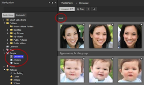 | Nachdem Sie die Gesichtserkennung ausgeführt haben, werden die Fotos in Personengruppen sortiert und in einem Ordner mit dem Namen „Unbenannt" abgelegt. |