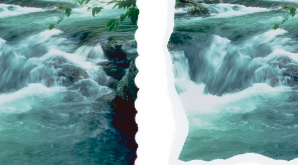 Mit dem dynamischen Plugin Abreißen können Sie einen Effekt abgerissenen Papiers auf die Kanten eines Auswahlbereichs oder einer Ebene anwenden. Sie können auch steuern, wie intensiv der Abreißeffekt ist.