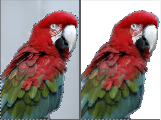 自動ペインティング用に領域を分離させたい場合は、最初に選択範囲を作成できます。最終結果で、選択範囲で保護された領域はキャンバスの色で塗りつぶされます。選択範囲については、選択範囲と変形.を参照してください。