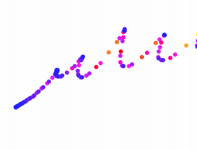 ブラシトラッキングの調整方法として最も広く使用されているのは、一般的なブラシストローク (波状のストロークなど) をスクラッチパッドに適用する方法です。Corel Painter では、このストロークを使用し、すべてのブラシバリアントに適した筆圧と速度を計算します。ただし、筆圧と速度の値を指定することもできます。