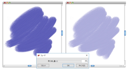 また、ストロークをフェードさせることにより、ストロークの不透明度の減少、または透明度の増加を行うことができます。