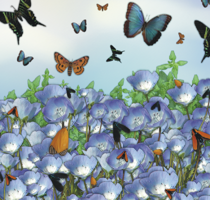 ノズルは、類似のイメージを不規則にペイントする場合に効果的です。花の上を飛び回る蝶がその一例です。