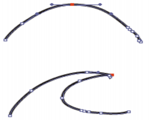 アンカーポイントには、スムーズポイント (上) とコーナーポイント (下) の 2 種類があります。
