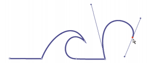 ベジェ曲線は、アンカーポイントとそれを結ぶ線 (またはパス) で構成され、直線も曲線も描くことができます。パスが曲線の場合、アンカーポイントから「ウイング」が延びます。ウイングは、曲線に接する直線として表示されます。ウィングには制御用の「ハンドル」が付いています。このハンドルをドラッグすることで、線のセグメントの曲率を調整できます。