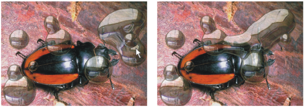 [リキッドメタル] ダイアログ ボックスで ドロップの選択ツール を選択し、水滴の外側をクリックしてすべての選択を解除します。 |