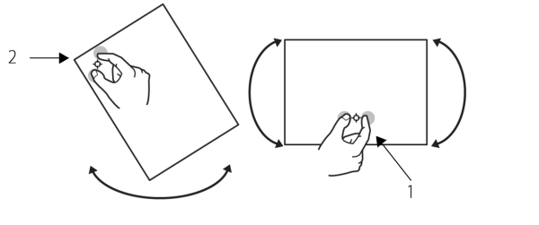 パン (1)、拡大/縮小 (2)、および回転 (3) を同時に行うことができます。