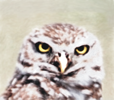 くちばしや目を除外する正確な「顔」の選択範囲を作成する方法について、以下に詳しく順を追って説明します。顔の精確な選択範囲を作成するには、ブラシストロークを制御し、効果を制限する必要があります。