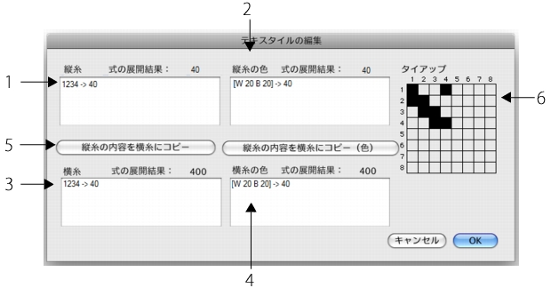[縦糸] 領域内の値は、テキスタイルの縦糸を織る順番を指定します。