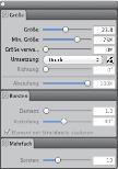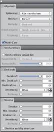 Weitere Informationen zu den Panels für Malwerkzeugeinstellungen, die die neuen Einstellungen für Verstreuungen enthalten, finden Sie unter Das Verhalten von Verstreuungsvarianten steuern.