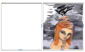 無地のキャンバス (左) から始め、想像力と Corel Painter ツールを駆使し、アートを作成します。