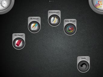 Corel Cinco for Painter で同時に表示できるカスタムパレットは 1 つだけですが、パレットを素早く切り替えることができます。Corel Cinco for Painter では、1 画面につき 5 つのパレット コントロールを表示できます。カスタムパレットに含まれるコントロールが 5 個を超える場合、スクリーンをスワイプして表示されていないコントロールを表示できます。