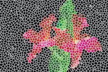 テッセレーションとは、長方形でないタイルで構成されたモザイクを指します。Corel Painter では、テッセレーションは何もないところから、またはクローンソースから作成することができます。クローンソースに基づいてテッセレーションを作成する方法は、とても効果的です。テッセレーション ポイントがクローンソースの明るさに従って配置されます。暗い領域ほどポイントの密度が高くなり、形状が小さくなります。