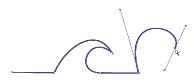 ベジェ曲線は、アンカーポイントとそれを結ぶ線 (またはパス) で構成され、直線も曲線も描くことができます。パスが曲線の場合、アンカーポイントから「ウイング」が延びます。ウイングは、曲線に接する直線として表示されます。ウィングには制御用の「ハンドル」が付いています。このハンドルをドラッグすることで、線のセグメントの曲率を調整できます。