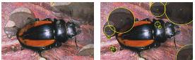 [スムーズ] スライダの値を低くして個々の水滴を区別したイメージと (左)、値を高くして水滴をくっつけたイメージ (右)