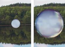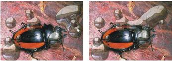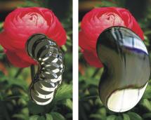 イメージの上に水滴を乗せれば、屈折による歪みが出ます。また、水銀のように流動する液体金属の塊も作成できます。[屈折度] スライダは、媒体の性質を調整し、水と金属の中間的な効果を作成します。ネガティブなメタルを使用して、メタルに穴を開けることもできます。