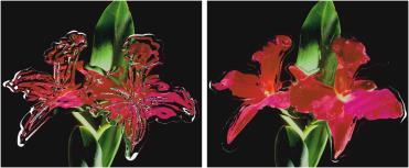 [量] ― [屈折] スライダで設定されている効果の度合いを調整し、レイヤー内のすべての水滴に適用します。水のような効果を作成するには、[量] を –0.5 に設定します。これにより、水滴の下にあるイメージが大きく見えます。 |