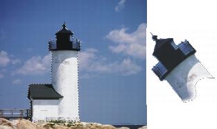 [ソース画像の選択範囲に合わせる] を選択すると、ソース画像のアクティブな選択範囲の内容を基準にします。クローン先でペイントすると、作成されるブラシストロークは、ソースの選択範囲に対応する領域にのみ適用されます。変形効果を適用する種類の採取が選択されている場合、選択範囲が変形されます。 |