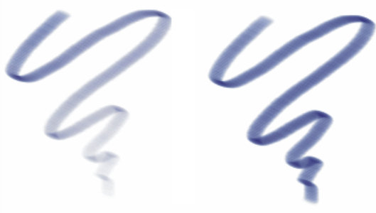 Brushstrokes with Dryout set to 724 (left) and 22026 (right)