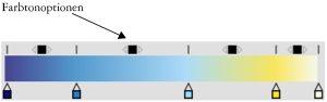 Tipp: Um diesen Vorgang besser nachvollziehen zu können, öffnen Sie die Standardanzeige Farbbedienfelder (mit Farbring und Helligkeits-/Sättigungsdreieck) und achten Sie auf die Anordnung der Farben im Farbring.