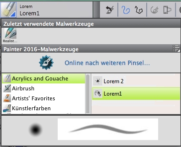 Jeder importierte Pinselstempel wird als neue Malwerkzeugvariante angezeigt.