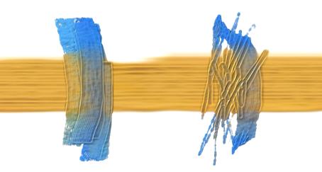Brushstrokes with low plow strength (left) and high plow strength (right)