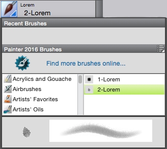 Corel Painter gives you quicker and easier access to one of the things that makes Painter an industry leader in digital painting — our unrivaled selection of brushes. To that end, you can now display the Brush Selector as a panel. That way, your recently used brush variants are at your fingertips, the entire Brush Library is readily accessible, and you can position it wherever it suits your workflow. And the latest brush packs are available from directly within the Brush Selector. For more information, see Displaying and customizing the Brush Selector.