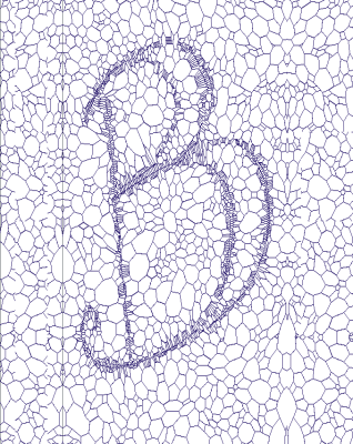 反転クローン — クローンソースを使用して、テッセレーションを生成します。イメージの明るい領域は、点の密度が大きくなります。 |