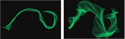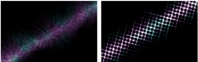 高いカオスと低い滑らかさのブラシストローク (左)、および高いカオスと高い滑らかさのブラシストローク (右)