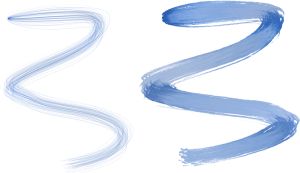 フロー粒子のブラシストローク (左) およびダイナミックスペックルフロー粒子のブラシストローク (右)