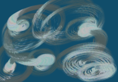 粒子ブラシは、物理学からヒントを得たブラシで、アートワークに独特の外観と雰囲気を与えます。中心点から粒子を放出し、それらがキャンバス上を移動すると、粒子で線 (パス) のパターンが描画されます。詳しくは、粒子ブラシ.を参照してください。