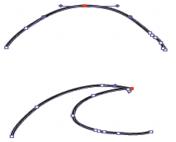 Bézier-Linien können gerade Linien oder Kurven sein. Sie bestehen aus Ankerpunkten, die durch Liniensegmente (oder Pfade) miteinander verbunden sind. Wenn der Pfad eine Kurve ist, ragen „Griffe" aus den Ankerpunkten heraus. Diese Griffe werden mittels geraden, tangential zur Kurve liegenden Linien dargestellt. Sie sind mit Bearbeitungspunkten versehen. Durch Ziehen an einem Griffbearbeitungspunkt können Sie die Krümmung des Liniensegments ändern.